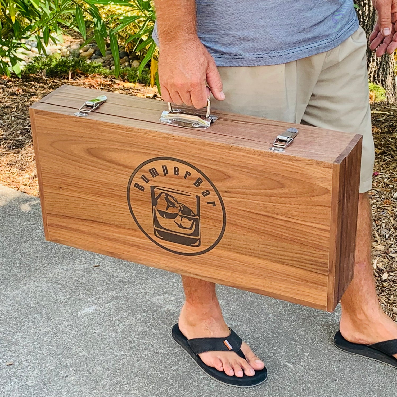 Introducing the BumperBar: the world's first compact, portable bar system designed to elevate any social gathering. It's lightweight, allowing you to take it anywhere; tailgating, camping, boating, fishing, or road trips. Plus, you can customize your BumperBar with bar mats, deluxe food prep and drink mixing accessories as you see fit. Start building your BumperBar today!